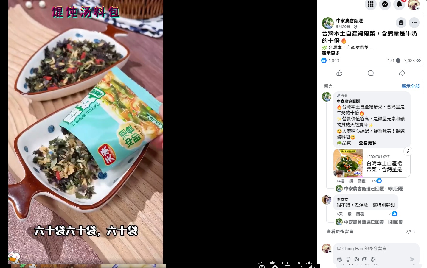 近期有「 FB 連續短片」冒用本會名義販售裙帶菜,並非事實。 本會目前未販售裙帶菜調理包,亦未同意該廠商使用本會名義於產品標示或任何文宣、廣告行為,其產品、文宣所列與本會有關事項,顯有誤導消費者,違反公平交易原則之嫌,應自行負擔相關法律責任。